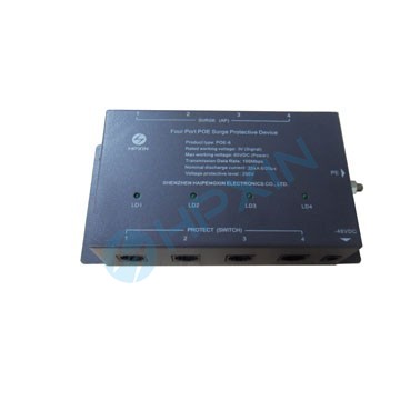 四端口POE網口浪涌保護器設計用于以超五類以太網線供電的網絡設備的防護,適合安裝在防雷保護區LPZ1-LPZ3之間的界面處,具有兩級防護功能,確保網絡設備免受雷電、工業干擾等引起的過電壓和過電流的損壞。